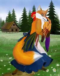 Աղվեսը մի աքլոր է բռնում ու նրան քարշ տալիս անտառ:Մի աղջիկ տեսնում է ու գոռում.